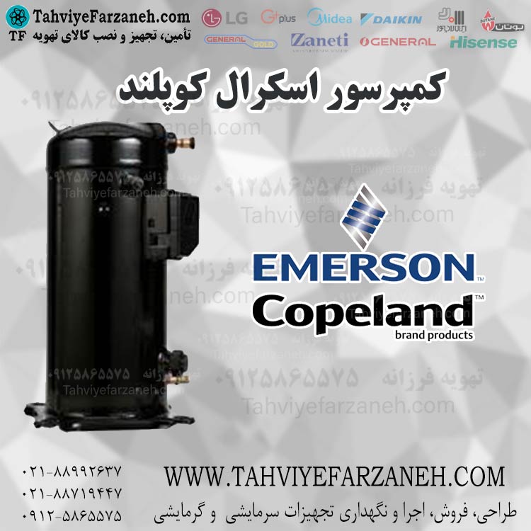 کمپرسور کوپلند Copeland یکی از شناخته شده ترین موتور کمپرسور های تبرید تراکمی در دنیا می باشد که زیر نظر و تحت نظارت کمپانی معتبر EMERSON در کشور آمریکا ( و تحت لیسانس در چین) تولید می شود.