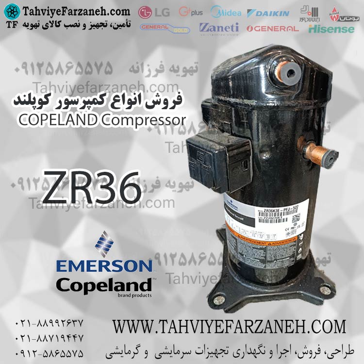 کمپرسور یدکی کولر گازی ZR36 کوپلند ZR 36 COPELAND از موتور کومپرسور های شناخته شده و با کیفیت برند آمریکایی کوبلند می باشد که برای متراکم سازی گاز مبرد در سیستم های سرما ساز مورد استفاده و کاربری قرار می گیرد. در ادامه توضیحات بیشتری در مورد انواع موتور کمپرسور ها عنوان خواهیم کرد.